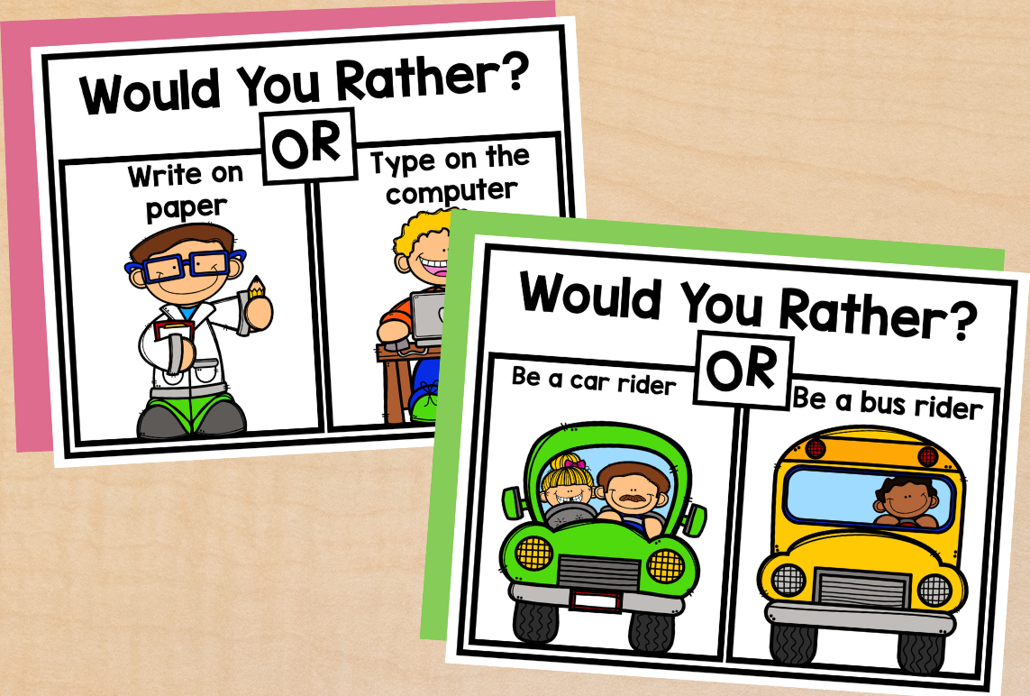 These Would You Rather prompts are perfect for morning meetings, quick opinion writing, or easy classroom discussions. Students share their thinking, listen to others, and begin building classroom community.